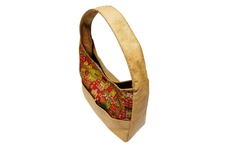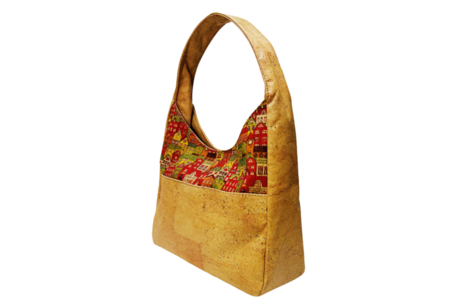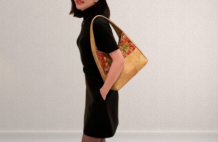 Patchwork Cork Shoulder Bag. Eco-friendly women's bag. Wholesale MOQ 300pcs, factory direct, OEM ODM supported. DDP shipping, professional bulk supply.