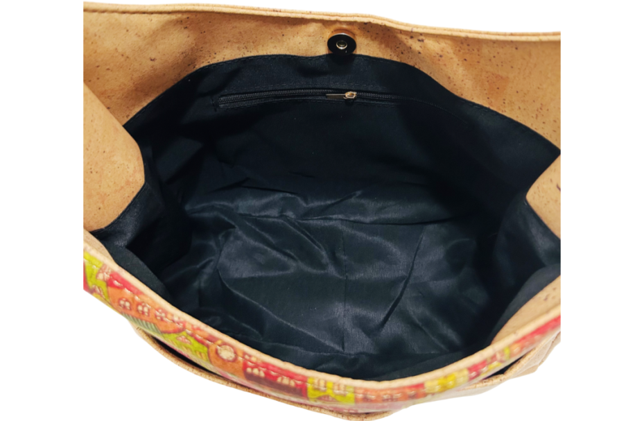 This stylish women's shoulder bag is crafted from premium patchwork cork material, featuring a vibrant, artistic design that combines eco-friendly sustainability with classic fashion. Ideal for wholesale buyers seeking unique, high-quality cork handbags.