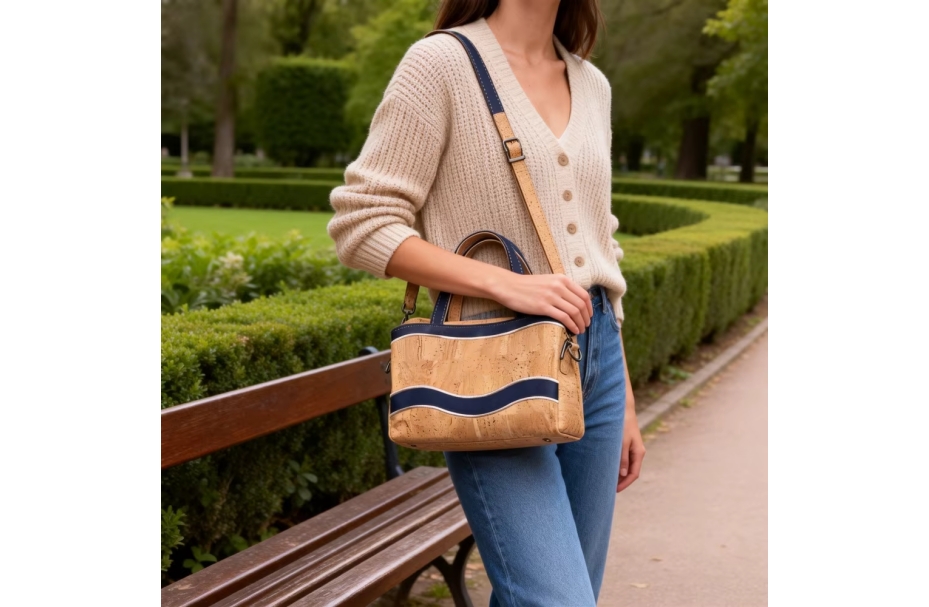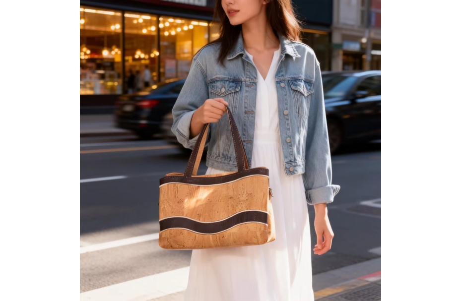 Custom China High-Quality Cork Handbag for Women Waterproof Daily Use Tote Bag Natural Portugal Cork Material.