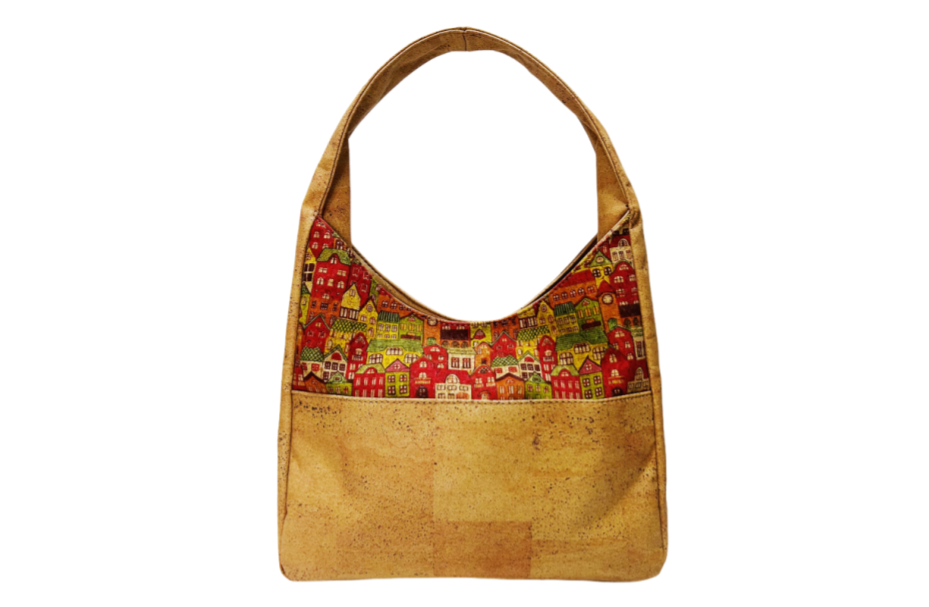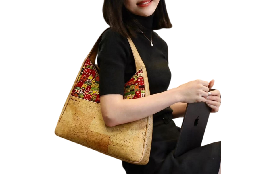 Patchwork Cork Shoulder Bag. Eco-friendly women's bag. Wholesale MOQ 300pcs, factory direct, OEM ODM supported. DDP shipping, professional bulk supply.
