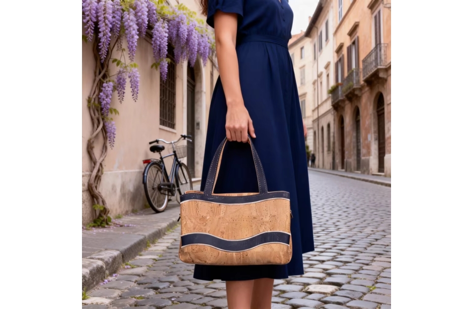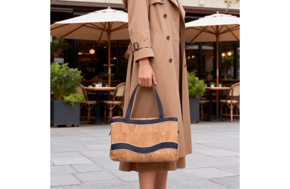 Custom China High-Quality Cork Handbag for Women Waterproof Daily Use Tote Bag Natural Portugal Cork Material.